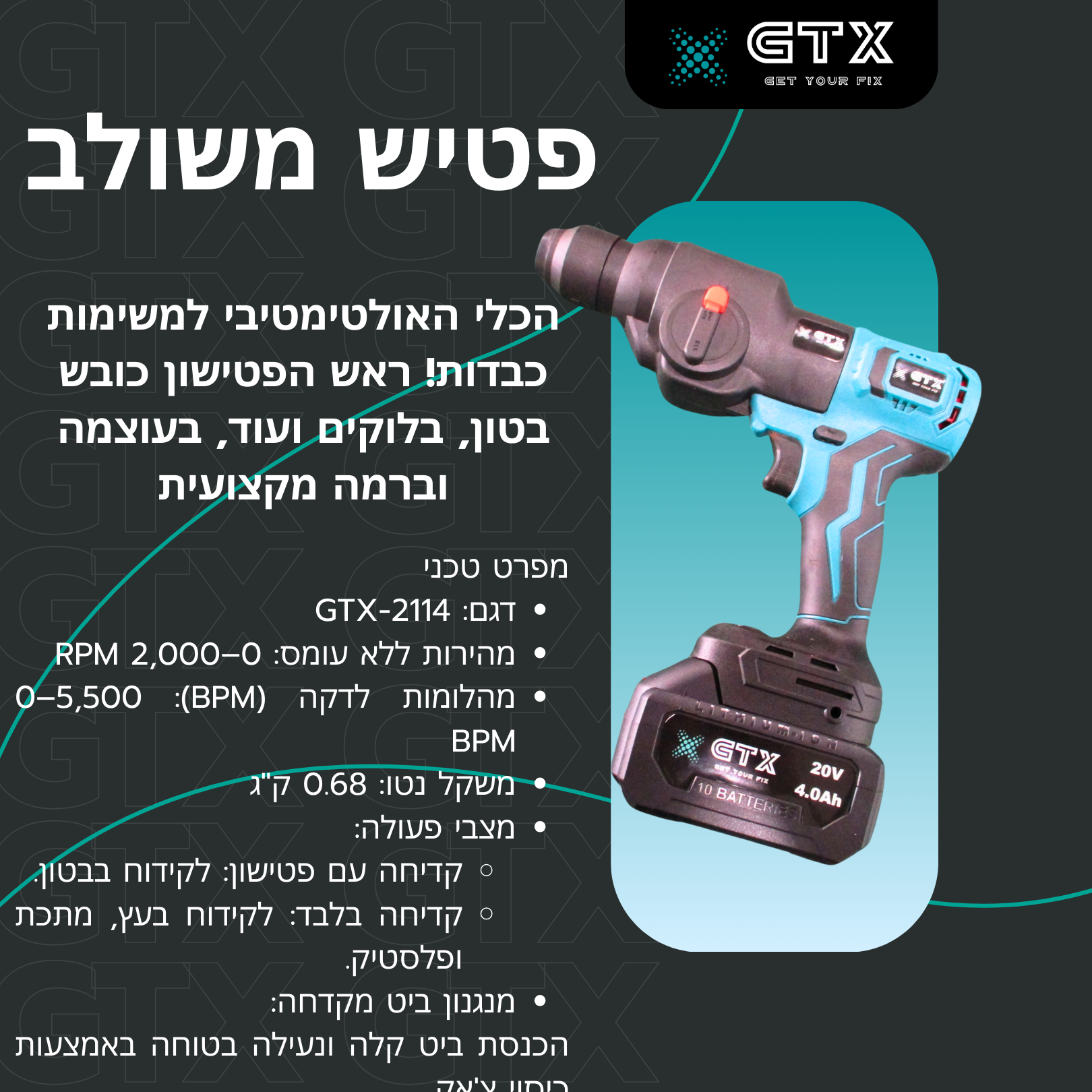 o פטיש עם סיבוב: מיועד למשימות בעלות השפעה גבוהה כמו קידוח בבטון ובנייה.