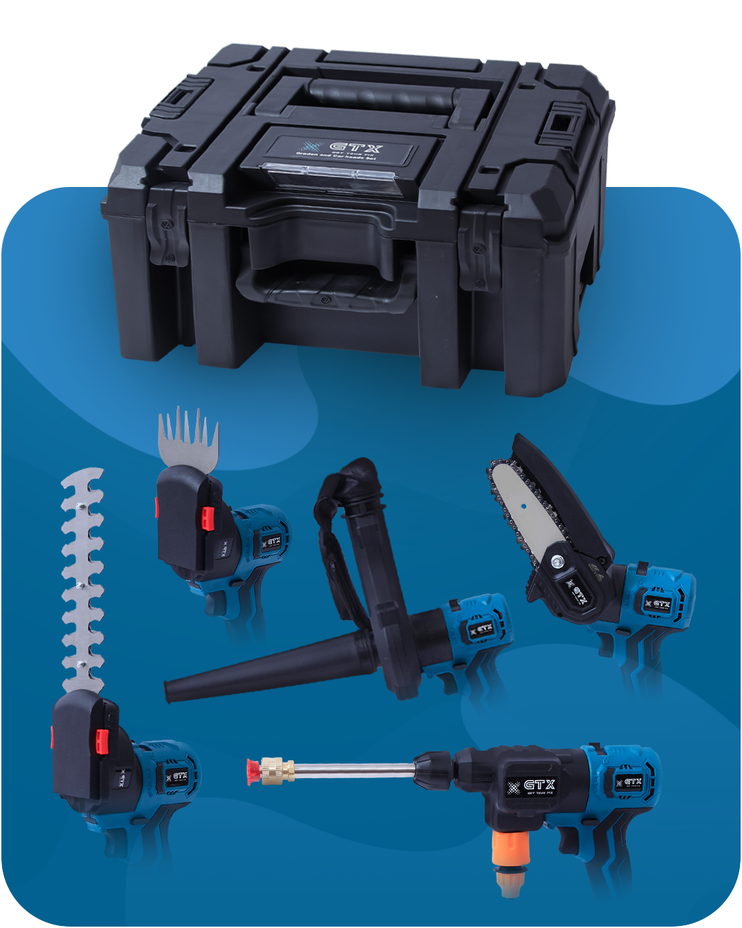 ערכת כלים חזקה ומדויקת לגיזום, ניקוי וטיפוח שטח חוץ – מחיתוך ועיצוב שיחים ועד ניקוי בלחץ וניפוח.